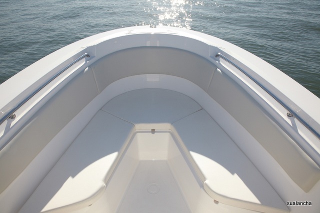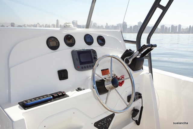 Nesta configuração de console central, se torna uma lancha muito versátil para pesca, mergulho e passeios. Você consegue usar todo o convés da sua lancha, que tem borda alta de proa a popa, permitindo por exemplo a briga com um peixe em 360 graus em volta do console central.
