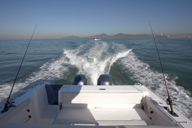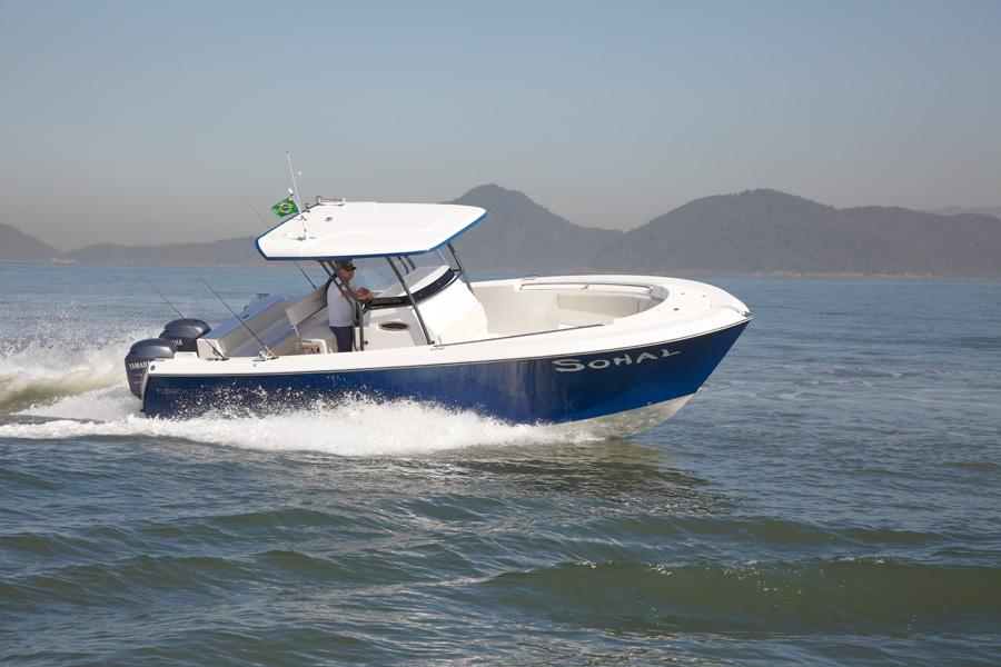 Nesta configuração de console central, se torna uma lancha muito versátil para pesca, mergulho e passeios. Você consegue usar todo o convés da sua lancha, que tem borda alta de proa a popa, permitindo por exemplo a briga com um peixe em 360 graus em volta do console central.
