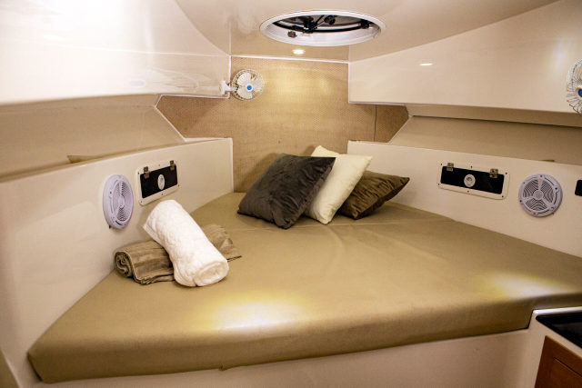 O espaço interno incrivelmente amplo deixara qualquer um surpreendido, sendo quase impossível encontrar uma embarcação entre 26 e 29 pés, tão navegadora, com um V e um flare característico de um Fisherman, e uma habitabilidade deste porte.