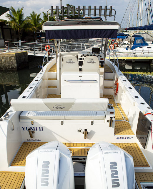 Os espaços externos podem acomodar vários passageiros com varias finalidades, um passeio em família, churrasco nas ilhas ou pescaria em alto mar (autonomia de até 300-350mn dependendo da motorização).