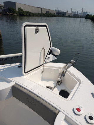 | Volante em aço inox Agulheiro de águaTrês respiros (01 Tanque de água e 02 tanque de combustívelAgulheiro de combustível Uma vigia elíptica Seis Cunhos de 6″ na borda Cunho de 6″ na caixa de âncora Escada de popa em aço inox Três amortecedores em aço inox (01 tampa da caixa de âncora e 02 tampa do banco de popa) Quatro porta varas embutidos distribuídos nas bordas de popa Quatro saídas de costado de 1” e duas de 1” 1/2 Dois U-bolt em aço inox (01 de 1/2” e 01 de 3/8”) Capa em inox de saída de água da caixa de âncora Chapa em “L” da bandeja de popa Um pega-mão de popa em aço inox Dois pega-mão no console central Estrutura do banco do piloto em inox Encosto do banco de popa em inox |