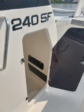O projeto Flórida 240 CC, possui amplo convés que permite a passagem 360º ao redor da embarcação e diversos porta-objetos, banheiro convencional com 1,70m, lista de itens de série incomparável, linhas hidrodinâmicas perfeitas e acabamento impecável, como todo projeto Flórida Marine.